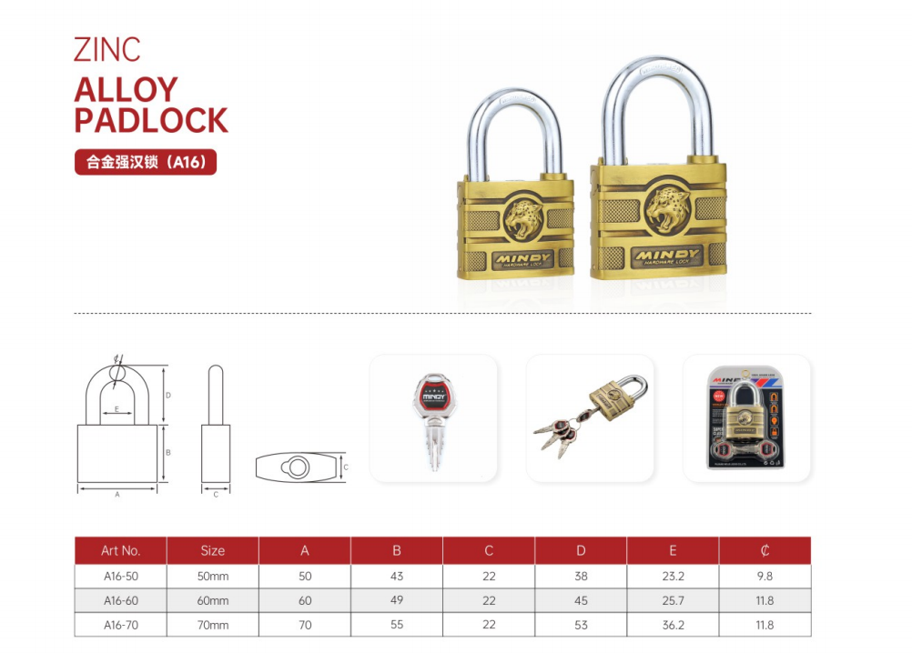 Zinc alloy padlock with atomic keys